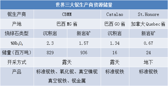 就公司來看,巴西的CBMM(巴西冶礦公司)、英國的Anglo American plc(英美資源集團)以及加拿大的Iamgold corporation三家公司鈮產量約占全球產量的95%。