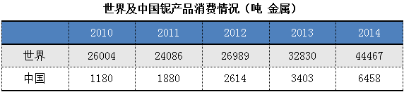我國是世界上最大的鈮資源消費國,2015年消費鈮資源約1.866萬噸。受宏觀經濟增速放緩和鋼鐵行業(yè)產能過剩影響,鋼鐵領域的消費在不斷下降,2015年鋼鐵領域消費的鈮鐵為1.613萬噸,占國內消費總量的86.4%。